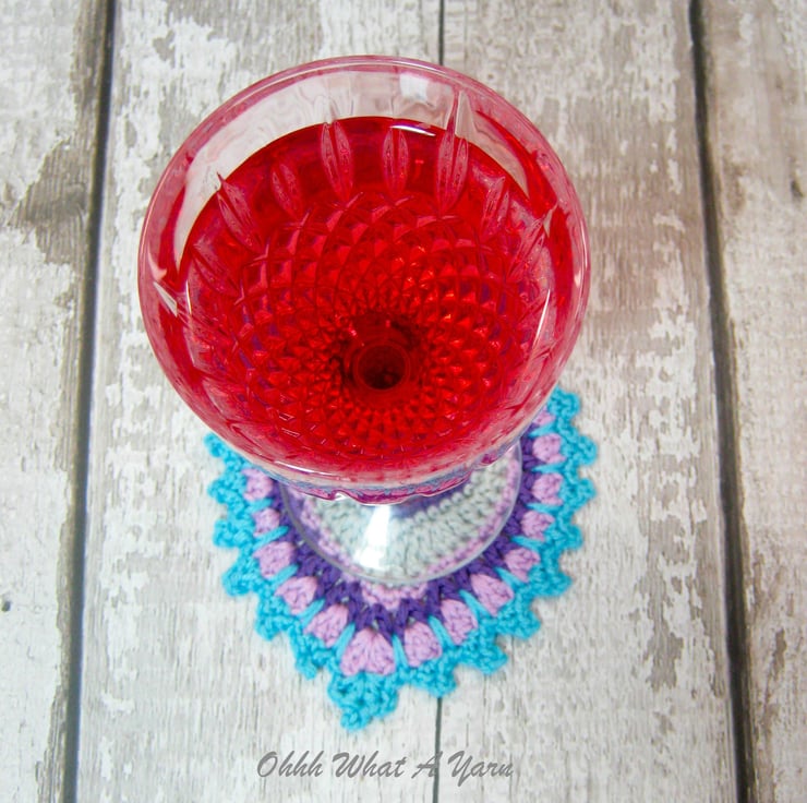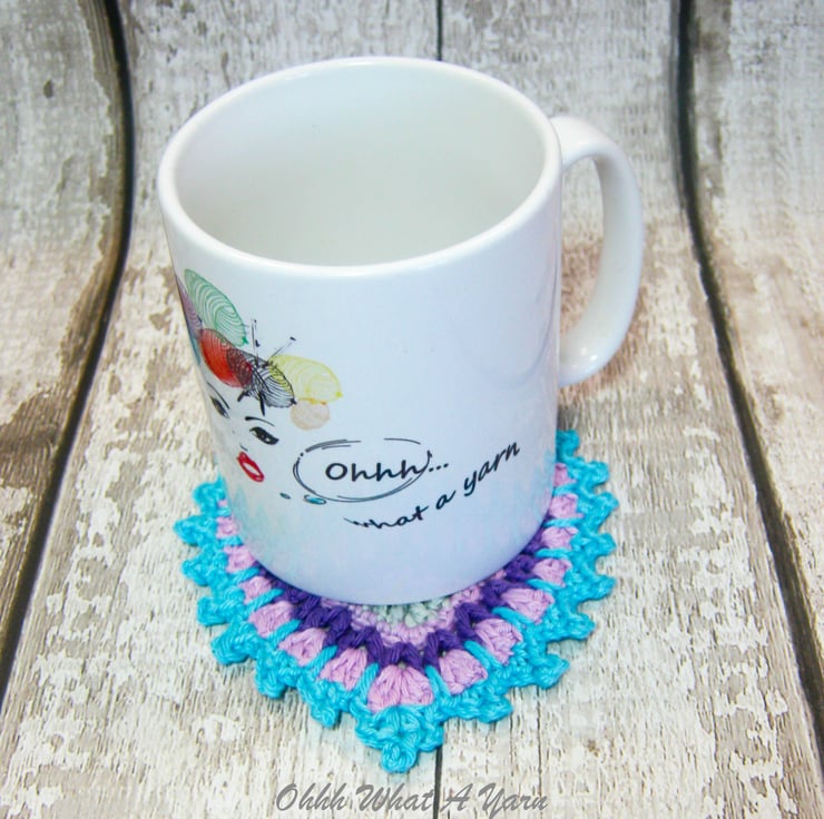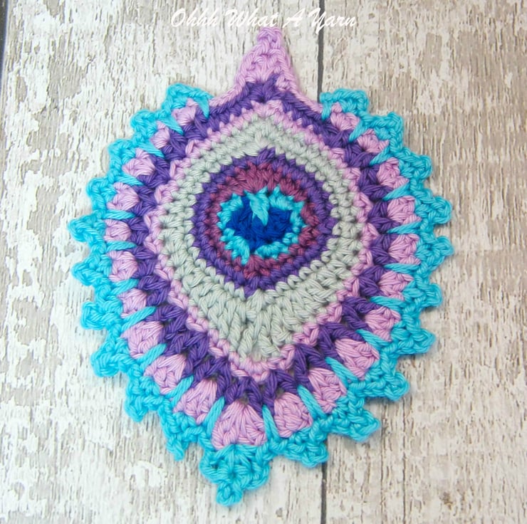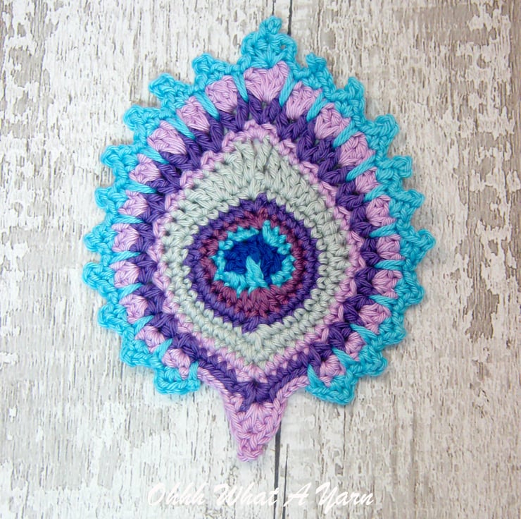 This beautiful peacock feather coaster is crocheted with premium cotton mercerised yarn. It has a lovely intricate design with picots.