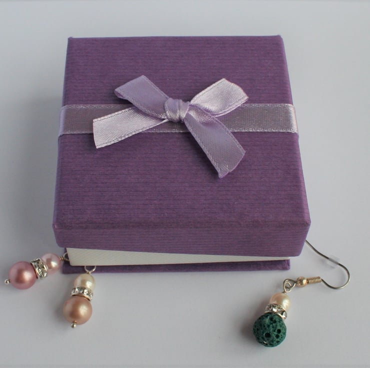 All of my jewellery comes ready to gift in a sturdy purple and white box with a pretty bow detail, as in the third photograph.
