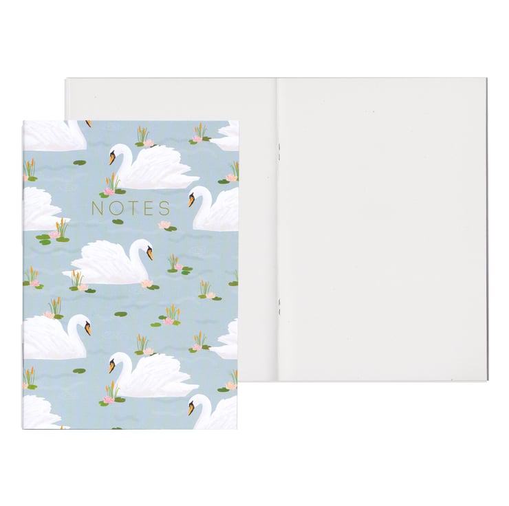 A cute notebook for jotting down ideas, shopping lists and plans. The cover features a pretty design of swimming swans.