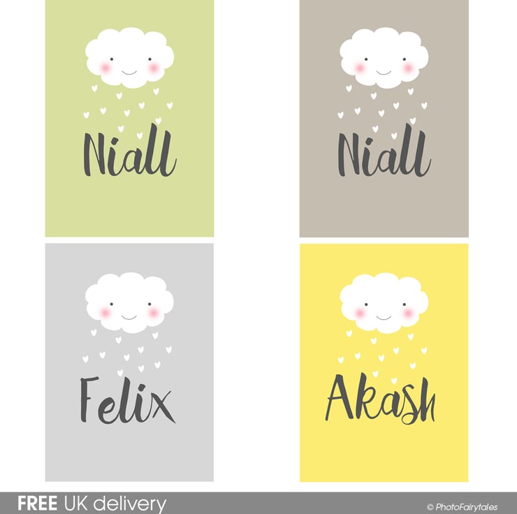 Part of my "Smilers" personalised print range: see my shop for other designs. Available in 6 colours: Beige, Pale Pink, Pale Blue, Light Green, Pale Grey or Soft Yellow. See images for indication of colour choices.