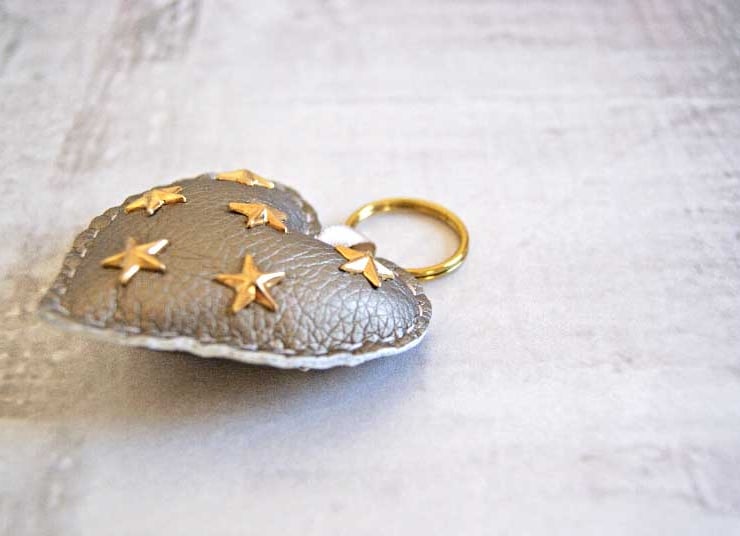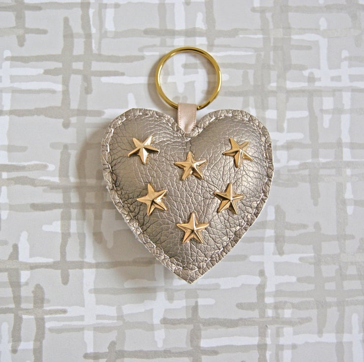 - Heart is attached to a 25mm gold split key ring with some ribbon.
