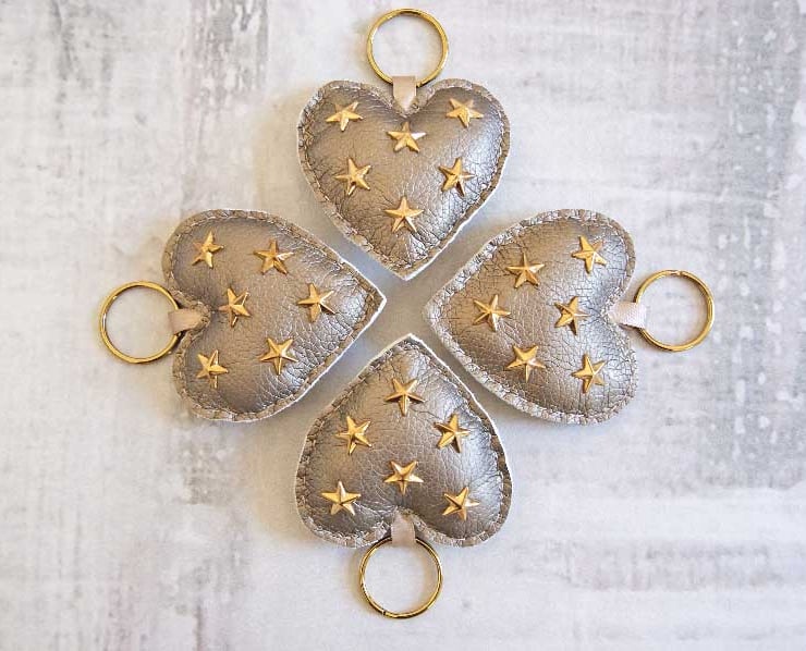 - Heart shaped faux leather fabric with brass star studs.
