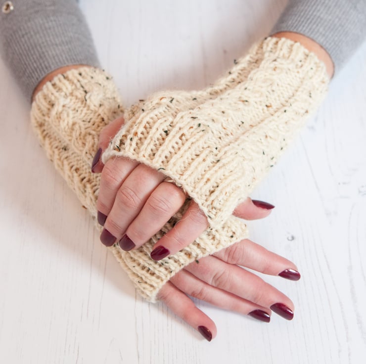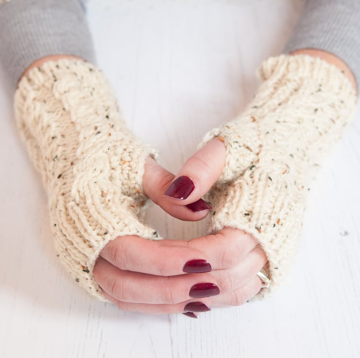 It features a gorgeous platted cable design and is a perfect gift for that person that loves to potter in the garden or greenhouse, spend hours in front of the computer or needs their fingers free for texting!