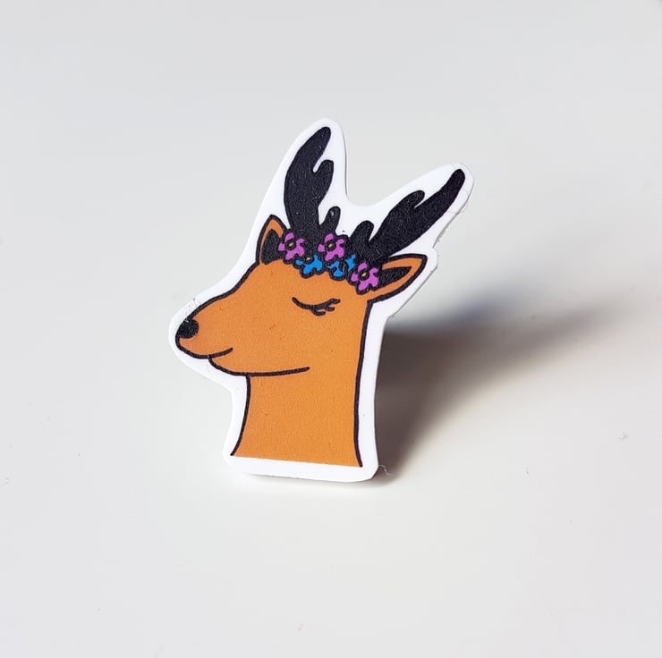 This listing is for one deer pin, complete with flower crown around her antlers to finish!