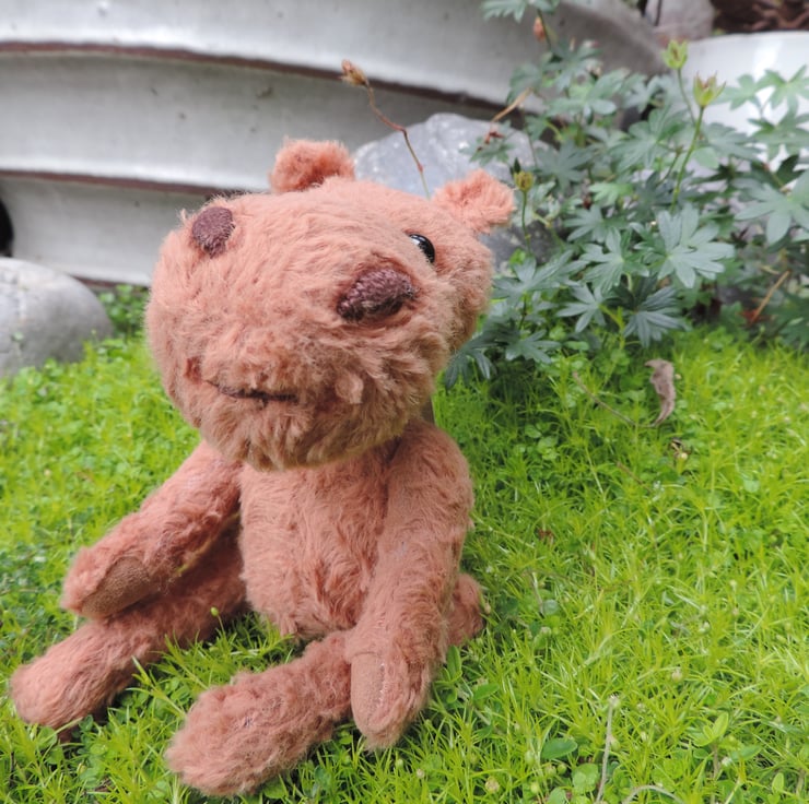 A sweet little viscose Hippo. Completely hand sewn and fully jointed with glass eyes. This is not a toy!! Collectible item only.