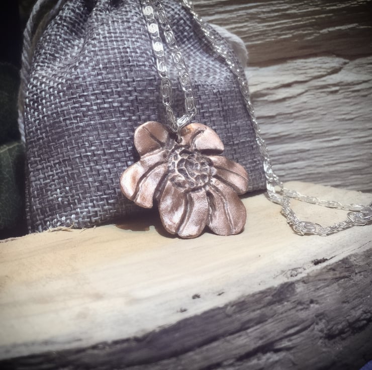 I have gone for a large floral shape but carved into a nice weight for the neck to hold.