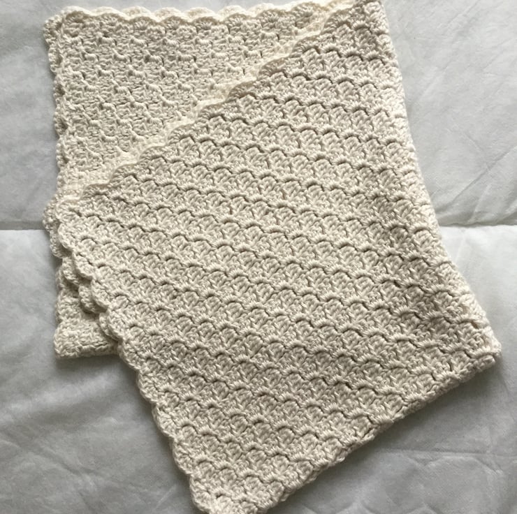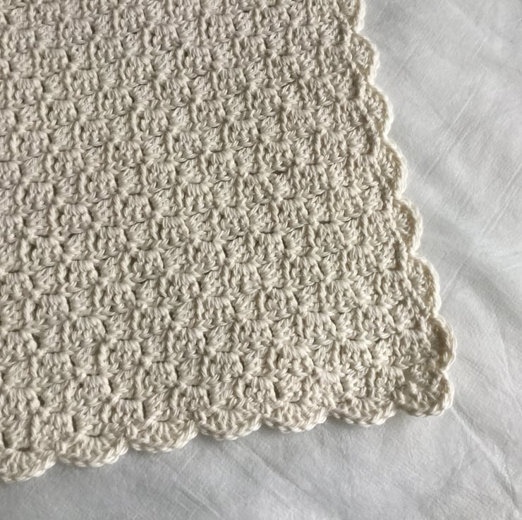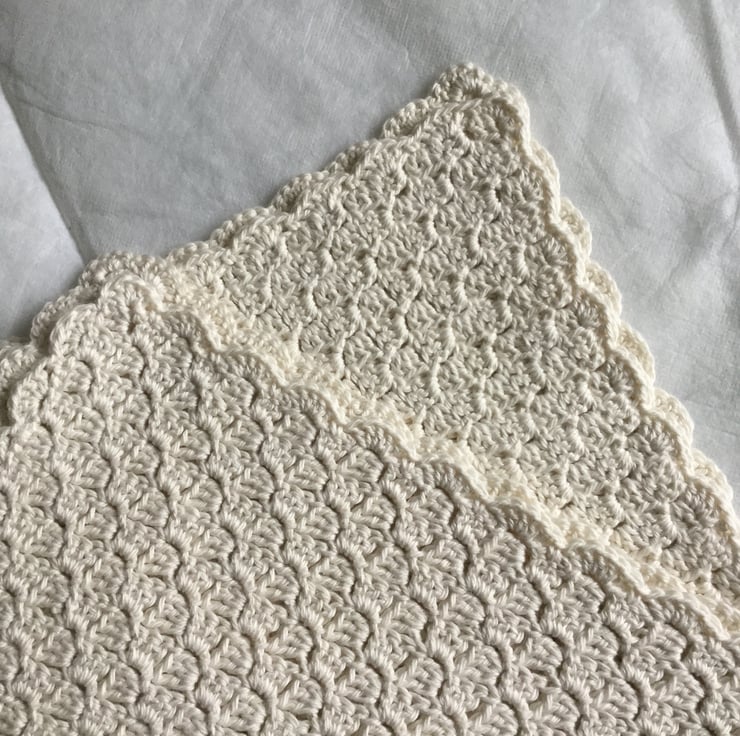 I have crocheted this baby blanket using a very soft 100% cotton yarn in a gorgeous cream.