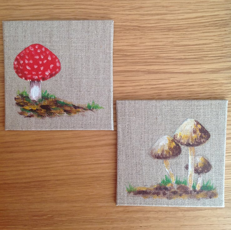 A pair of original hand painted toadstool coasters, perfect for a cuppa on Autumnal days!