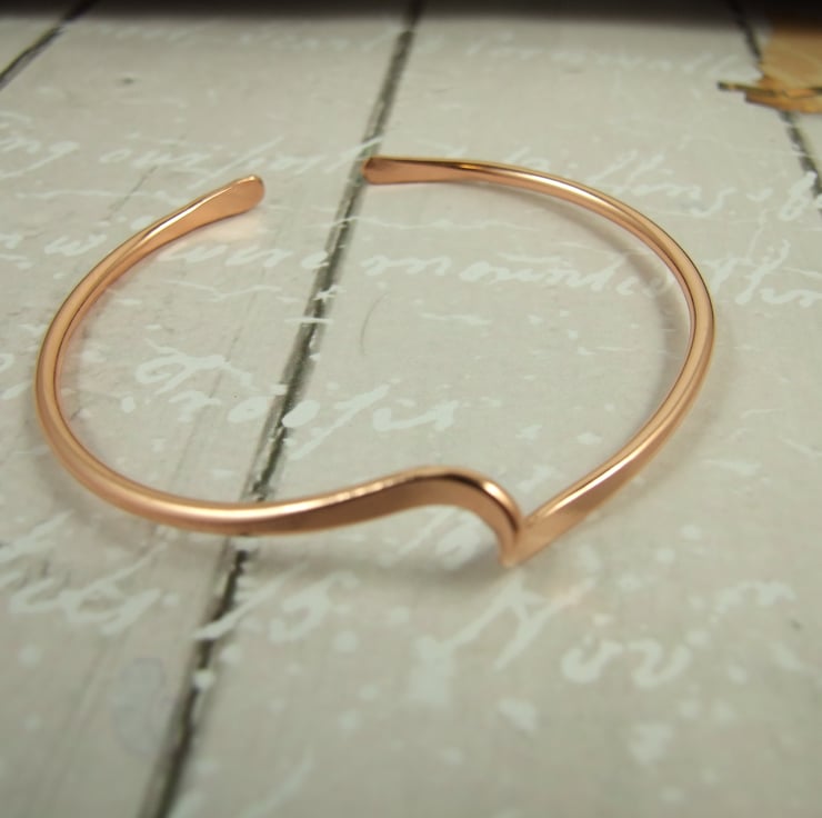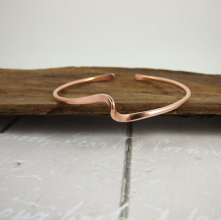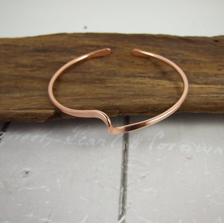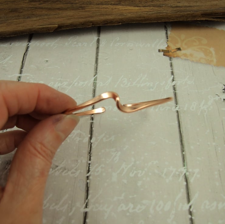 Hand forged copper torque cuff which I have cut from 2.5mm thick copper wire then hammered and shaped to fit the curve of your wrist. Bracelet to fit medium wrist approx 7.5 inches (19.1cm) circumference allows for 1 inch opening. Can be made in other sizes, please state size when ordering, alternative sizes will be made to order and will take 5-7 days.