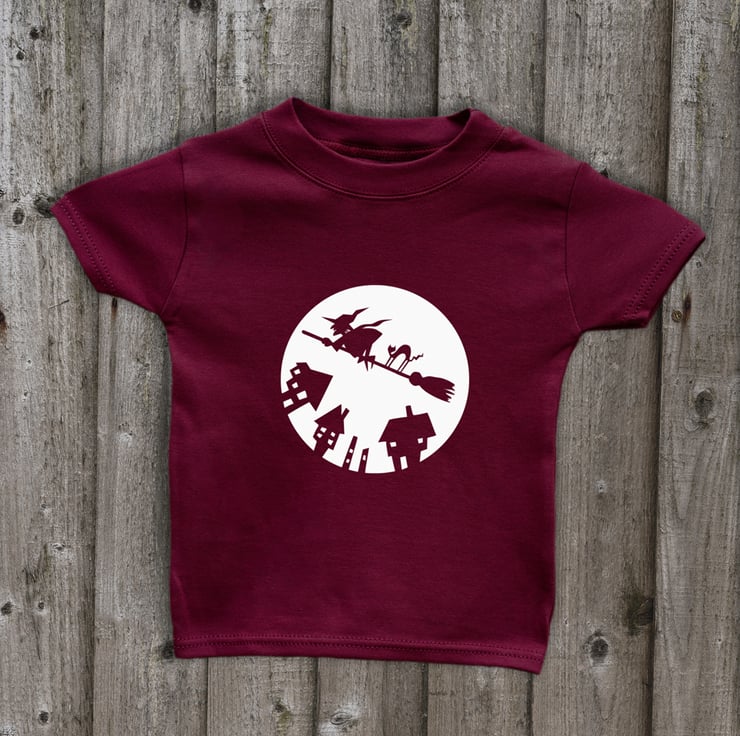 This Witch glow in the dark tee is made to order in soft cotton, and comes in a range of colours - black, red, cerise, turquoise, navy, emerald green, purple and maroon.