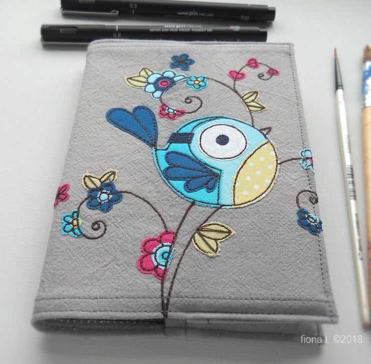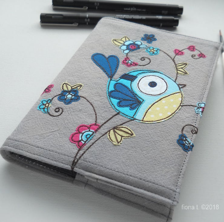 freehand embroidered floral bird notebook cover with A6 sketchbook included.