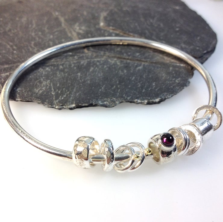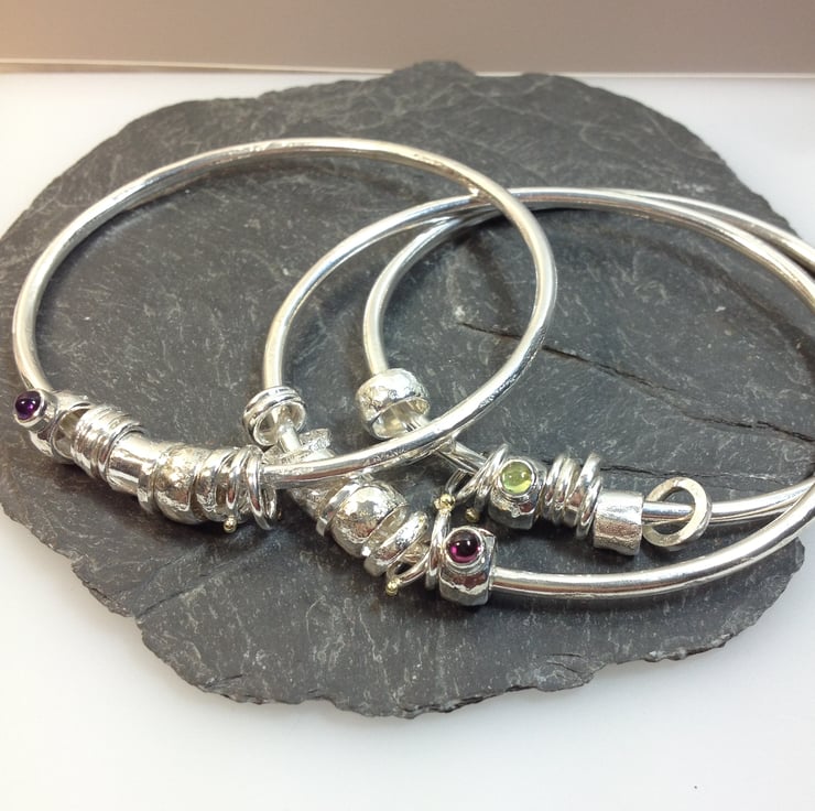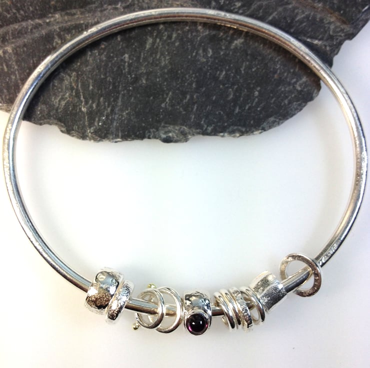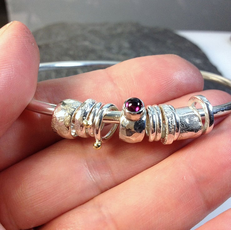 The bangle and beads have been burnished to a bright finish.