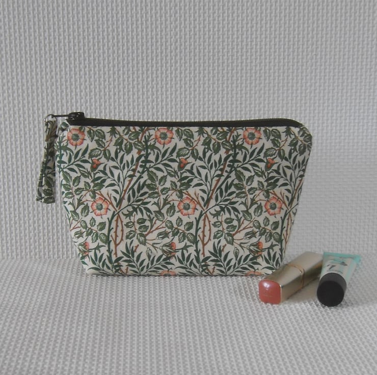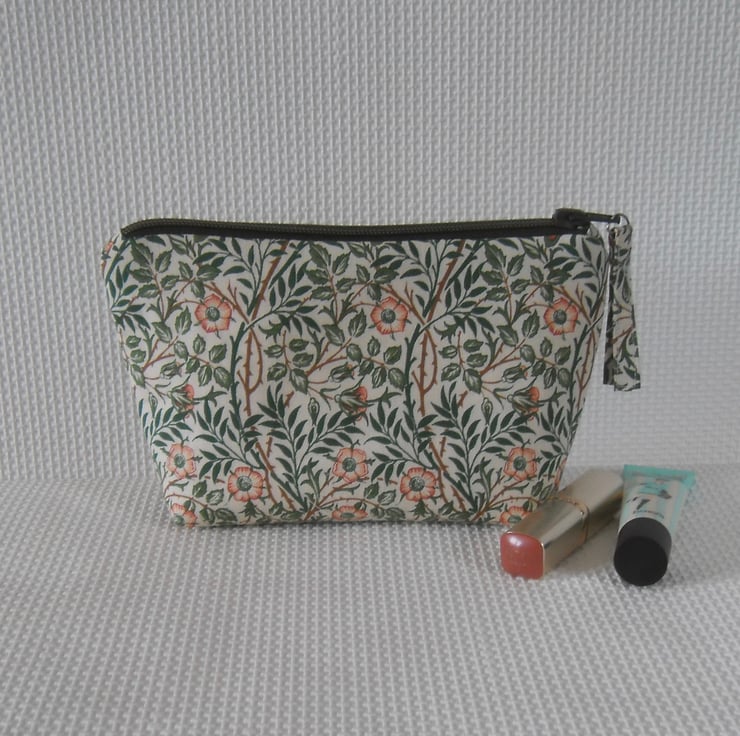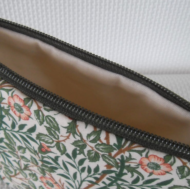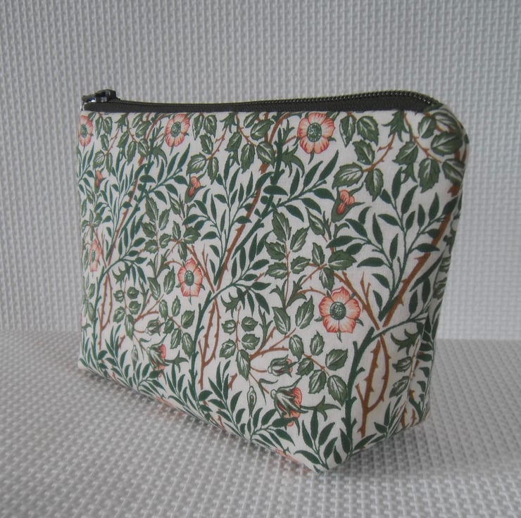 This zipped make up bag has been carefully made in a lovely William Morris cotton print called Sweet Briar.