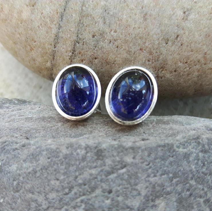 Stunning silver and gemstone ear studs featuring oval cabochons of Iolivvvvvv changes slightly with the angle of view. This stone has a long history and was used by the Vikings as a navigation aid. The stones are mounted in sterling silver settings with sturdy ear posts and butterfly scrolls. The earrings are lightweight, comfortable to wear and nickel free. They will be packaged in a smart gift box or bag and sent to you by Royal Mail first class post.