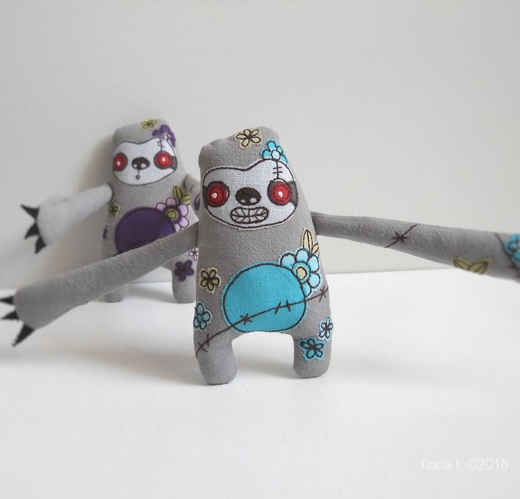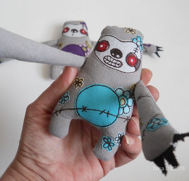 this adorable zombie sloth measures 12cm (4.5 inches) from the top of his lumpen head to the tips of his stubby toes, and with his arms outstretched, he has a glorious 25cm (10 inches) wingspan tipped with deadly razor-like claws.