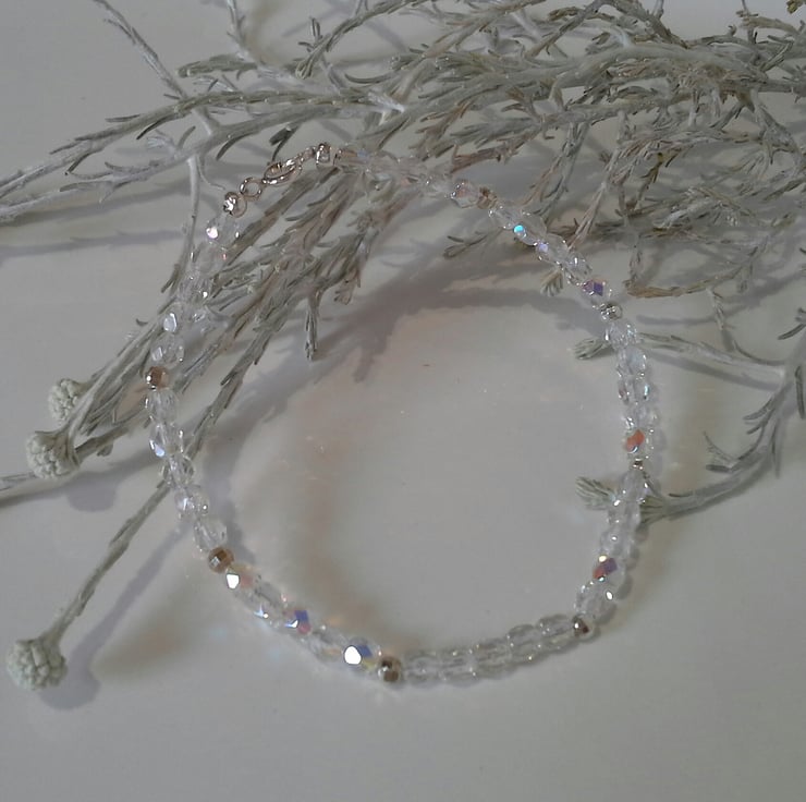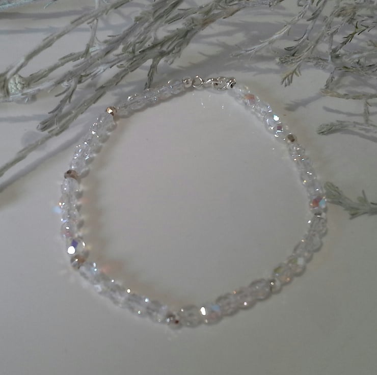 A very pretty sparkly bracelet designed and hand crafted by myself created from quality polished faceted branded 'Fireline' glass beads. To compliment the beads I have incorporated 3mm faceted sterling silver spacer beads for that extra touch of luxery, finished off with a small sterling silver bolt ring clasp. For the main construction professional stainless steel jewellers wire has been used for added strength and lasting durability.