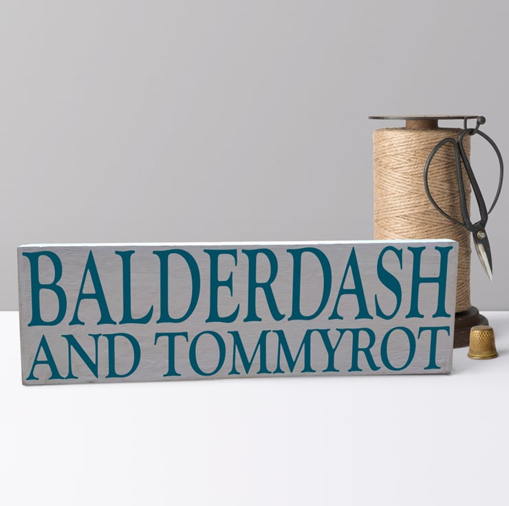Balderdash & Tommyrot, bespoke wooden house block sign plaque