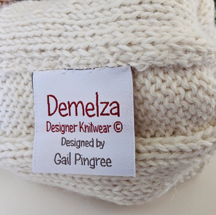 Baby knitwear is designed and hand crafted by Demelza Designs in Cornwall meeting UK baby safety standards, Only branded premuim acylic, acrylic/natural fibre blends or pure natural fibre yarns are used in baby knitwear which conforms to BS984/76 standards.