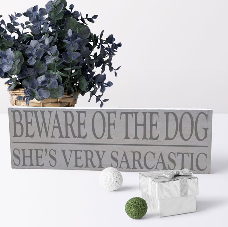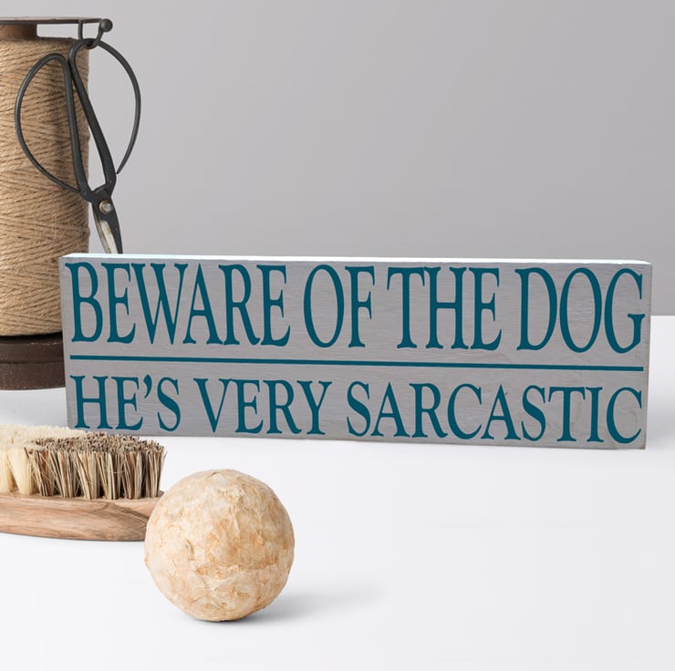 We always read so much into our dogs’ expression because we know our dog is massively intelligent and witty (well, if they could talk I’m sure they’d say something droll…). So acknowledge his or her magnificent shrewdness with this fun - and informative - wooden warning sign!