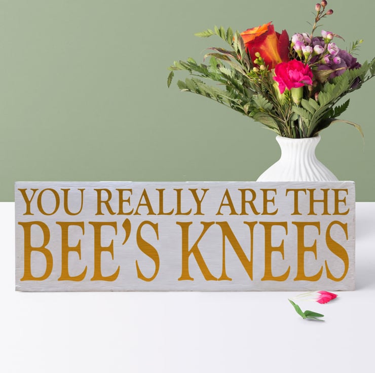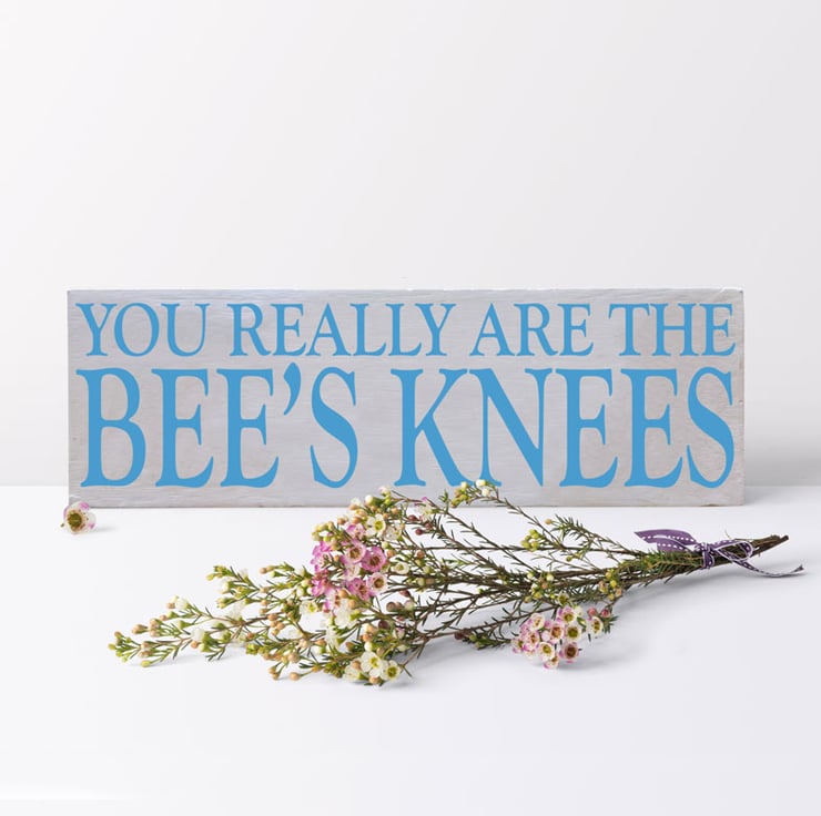 Ideal for anyone who is the absolute bee’s knees! This lovely bespoke wooden sign is a great gift for a loved one – perfect for any occasion: to celebrate the arrival of a new baby, a sweet gift for Mother’s Day or Father’s Day, a birthday gift, or a romantic present for an anniversary or Valentine.