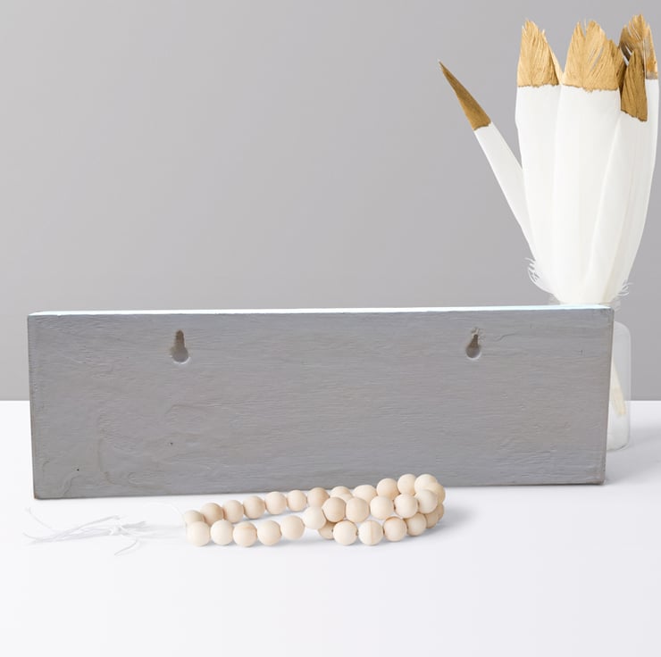Chunky enough to be a freestanding shelf block, the plaque has pre-drilled holes on the reverse if you wish to hang it on the wall. The blocks are hand painted in off-white/ivory with an attractive rustic ‘shabby’ finish, and there are variations between each one. After adding your text the entire block is given 2 coats of matte varnish to protect it from dust & dirt. (NB: sign suitable for inside use only.)