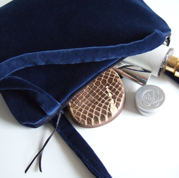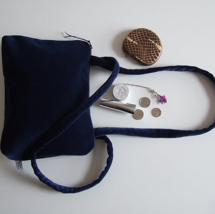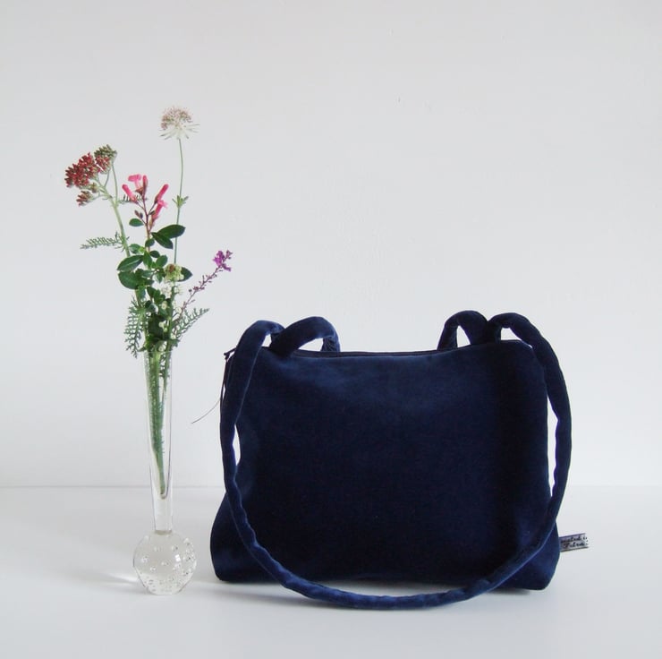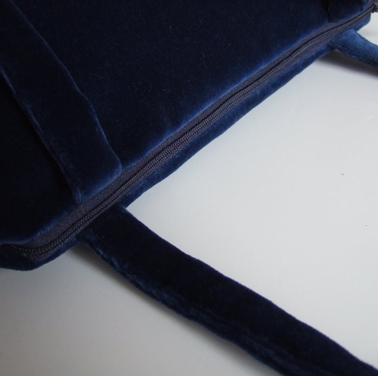 I was so pleased to find this gorgeous piece of old cotton velvet. Its sumptuous blue colour makes it perfect for evenings, while its practical size makes it a useful little bag all day as well.