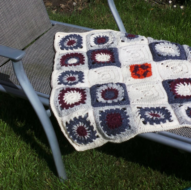 Wanted to use a variation on the motif blanket Granny square so tried out a few variants and came up with this!