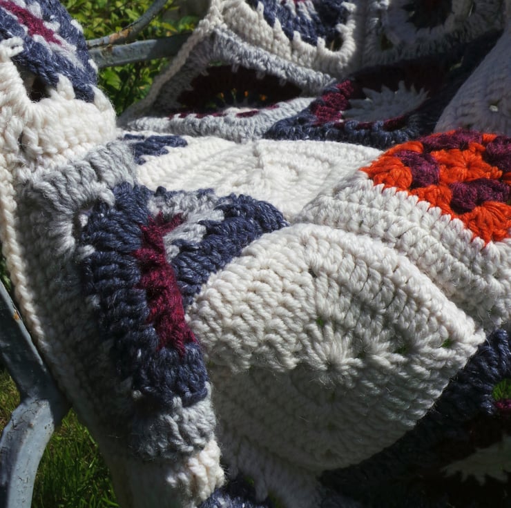Get warm and cosy. With various uses around the home and the garden, you could take it to the beach in Summer or cosy up around the fireside when it's cooler. I've only made one of these so it is a real one off and when it's gone it's gone.