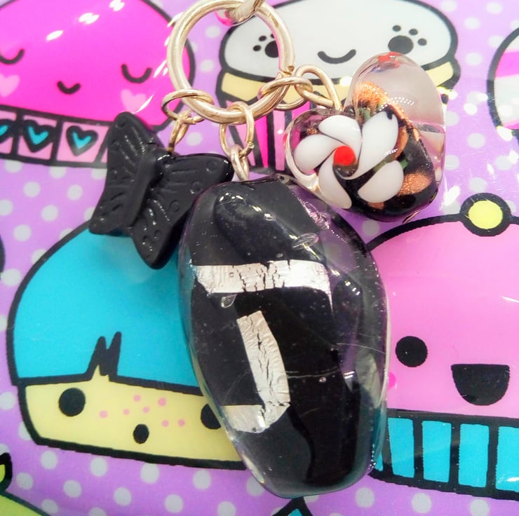 Black Lampwork Bead Heart and Butterfly Bag Charm, Bag Charm, Thank You Gift, Gift for Teacher, Black Bag Charm, Heart Bag Charm, Lampwork Bead Bag Charm, Butterfly Bag Charm