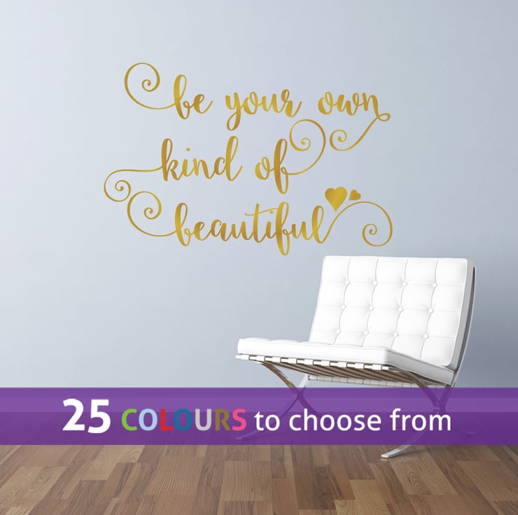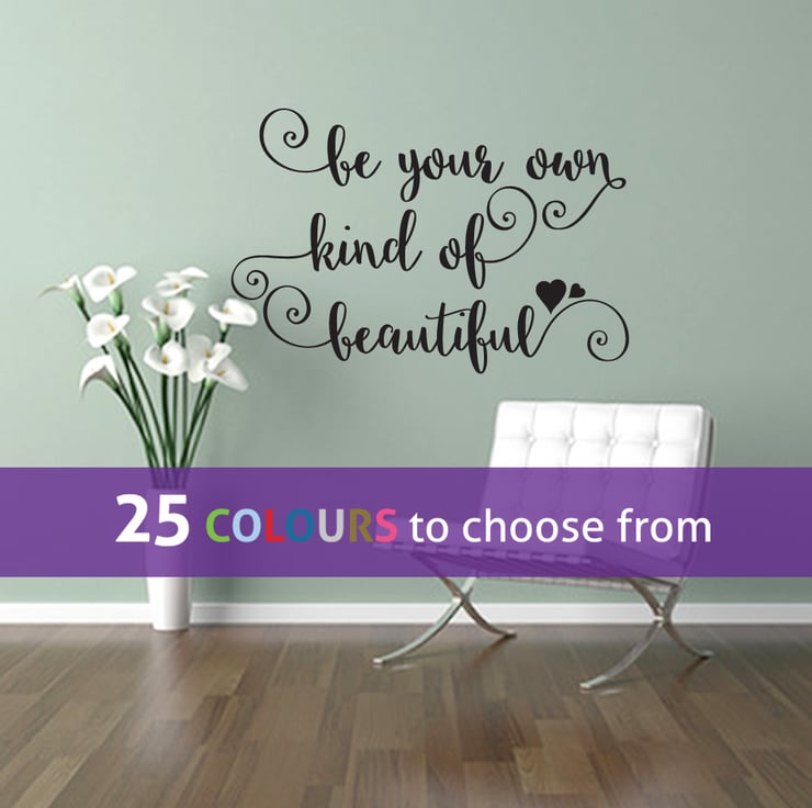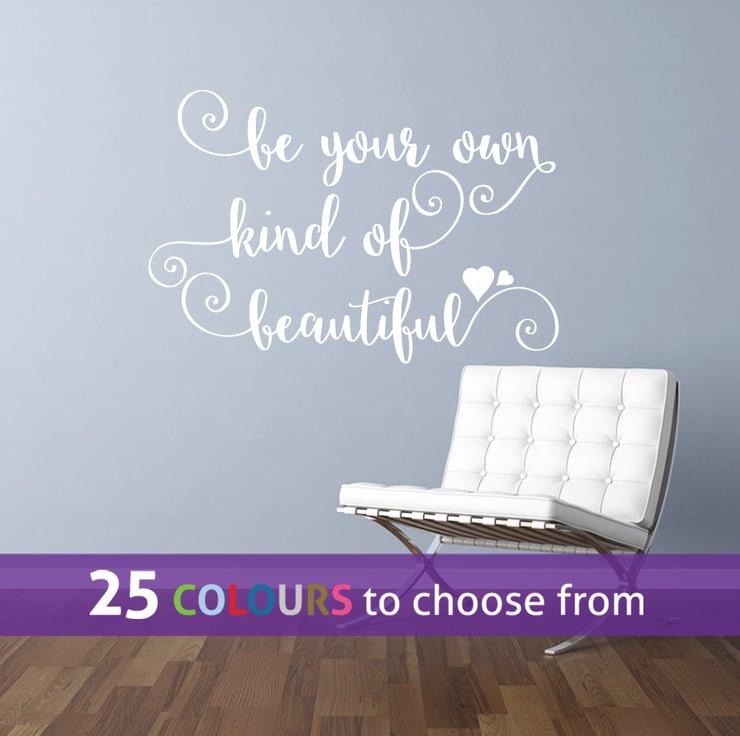BE YOUR OWN KIND OF BEAUTIFUL quote with swirls and hearts wall art sticker decal.