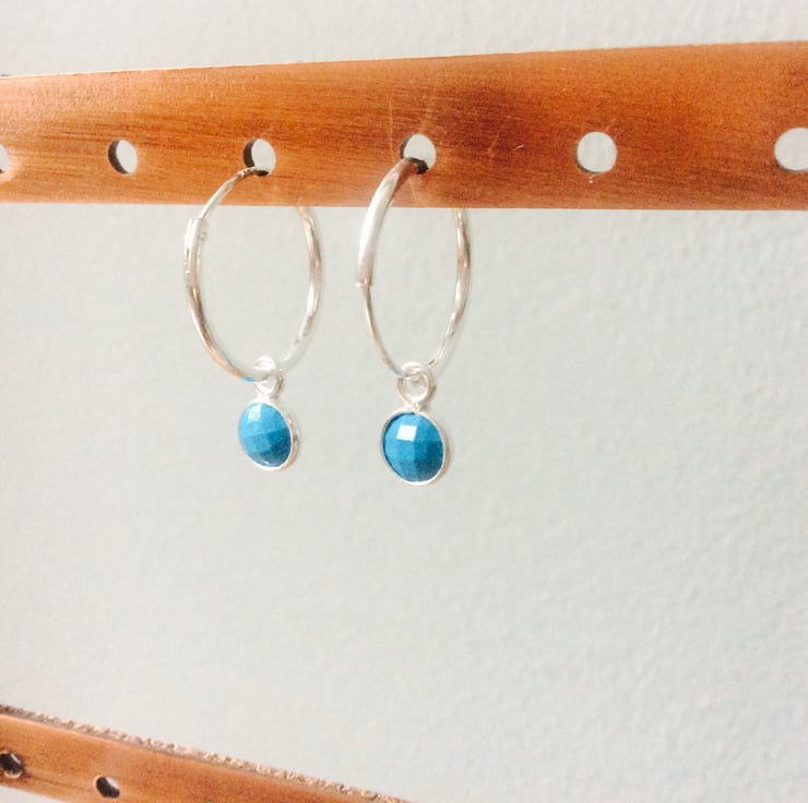 Just simply stunning. Grade A real turquoise which has been faceted, on Sterling silver 925 hoops which are a good solid thickness, approx 1.25mm wrapped in tissue paper and in a free gift box tied with ribbon. Hoops are 16mm.