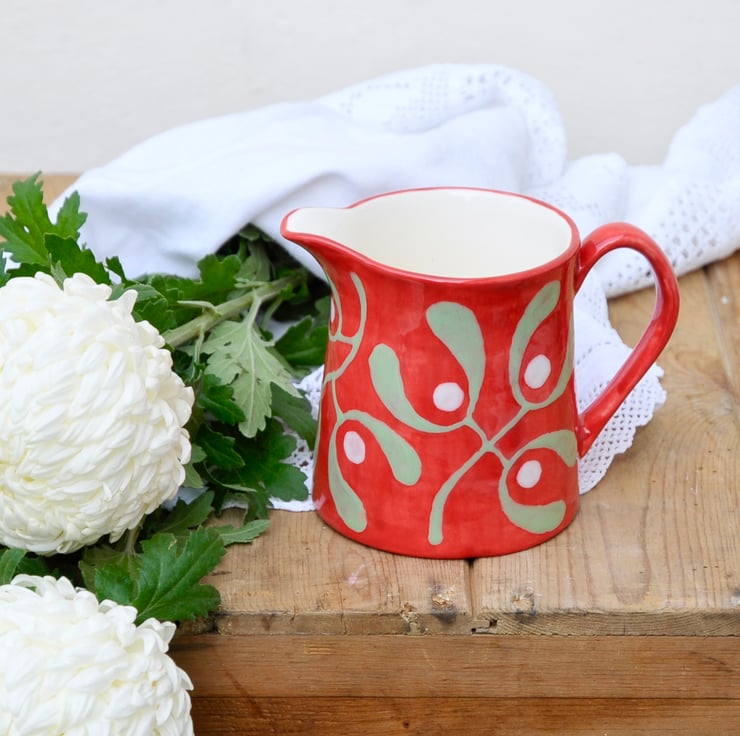Christmas Red Mistletoe Milk Jug - Hand Painted