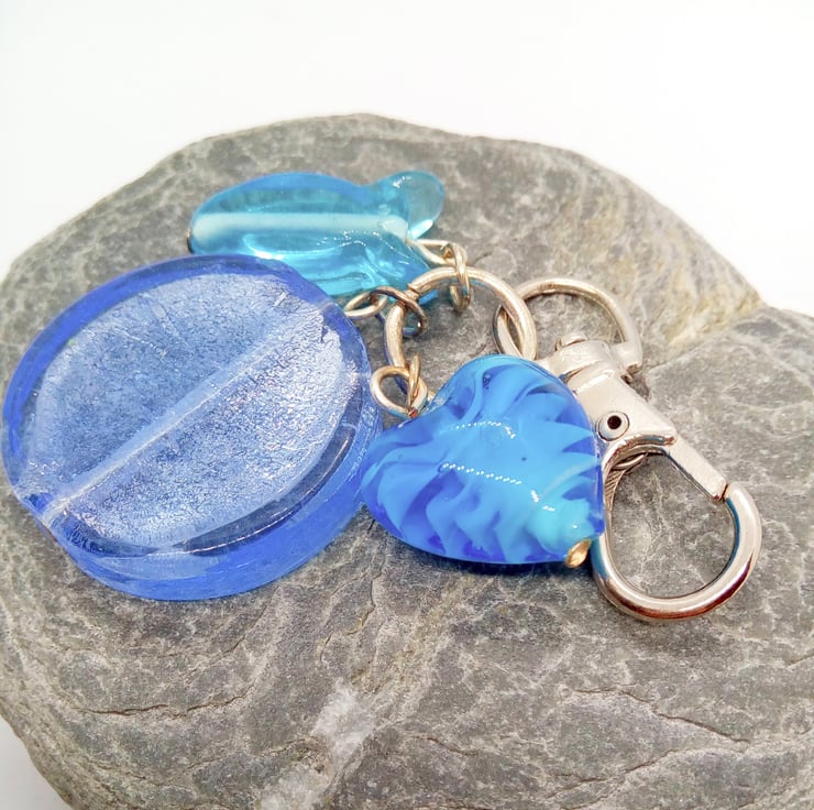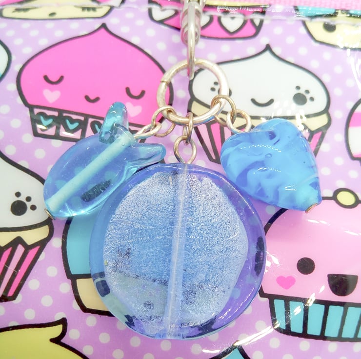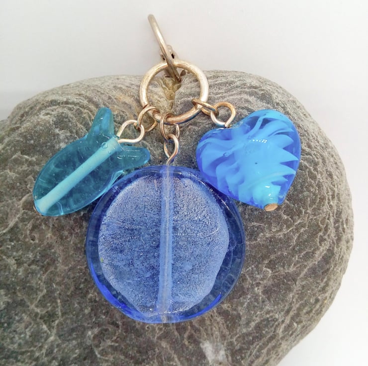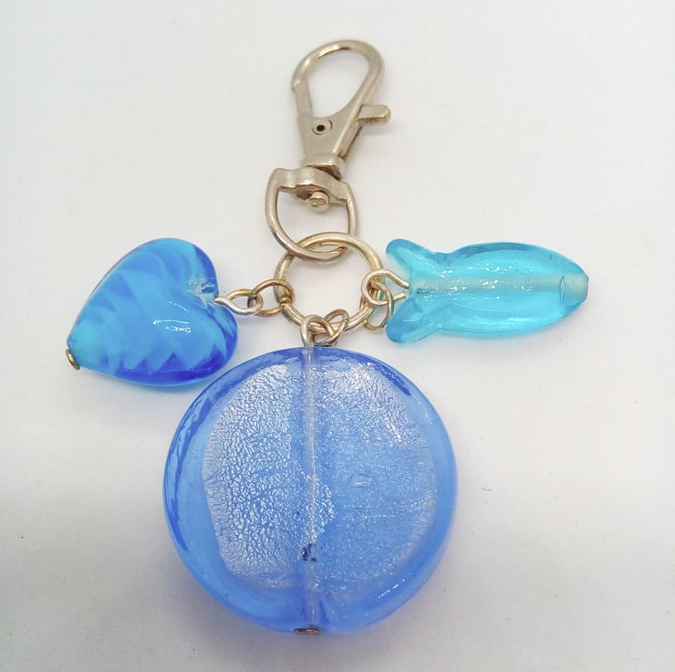 Blue Glass Bead Heart and Fish Bag Charm