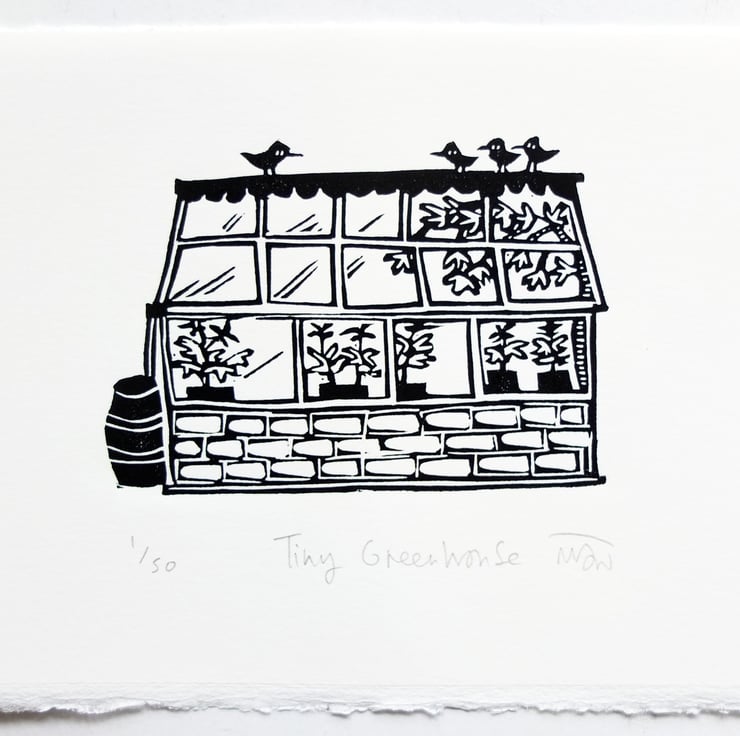 This sweet lino print is from my original drawing and has been hand carved into a block of lino and then inked up and burnished onto Somerset Satin paper in a limited edition of 100 prints. Each one is numbered and signed on the front.