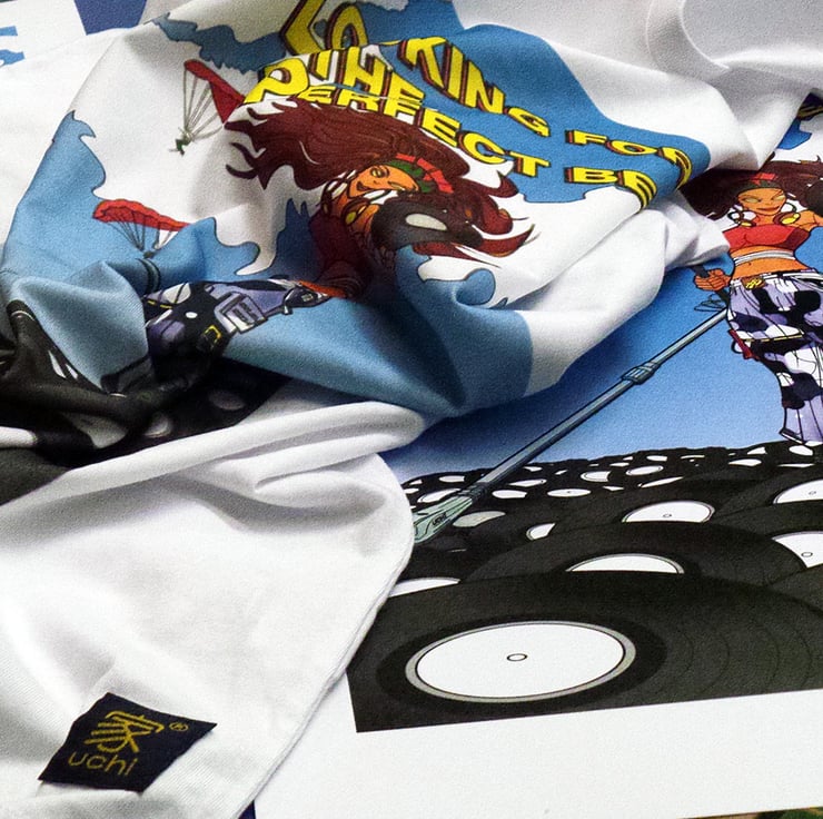 Whether diggin’ for rare grooves or breaks, for lovers of vinyl records uchi presents a fulll colour remix of a classic uchi print. Looking for the Perfect Beat is the 34th uchi release appearing on uchi’s fourth album Soliloquy of Chaos.