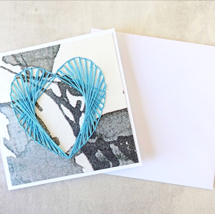- Hand stitched with cotton threads to give a more tactile feel. The layering of the threads creates a slightly 3D heart.