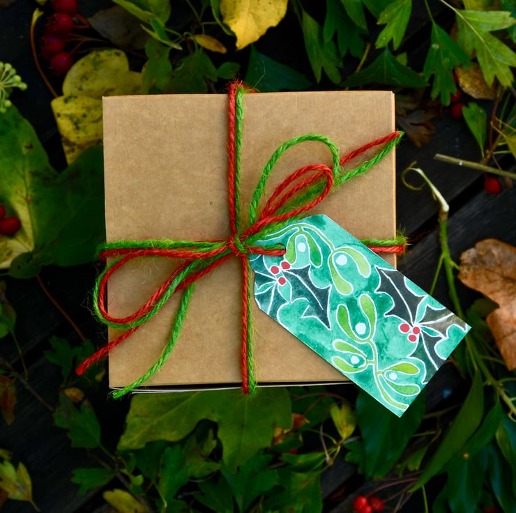 This will be beautifully packaged in a special brown cardboard box and tied up with coloured string. One of my personally designed gift tags will be attached, on which you can write your own message, or I can add a message for you.