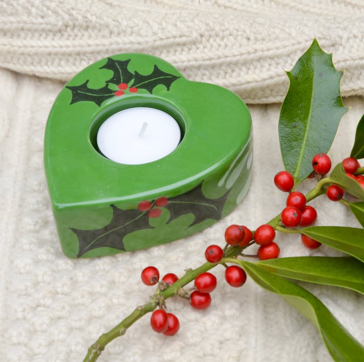 Green Holly & Mistletoe Tea Light holder you can even put a scented tea light candle in to make the room smell nice, perfect for a bit of Chrtistmas Danish hygge.