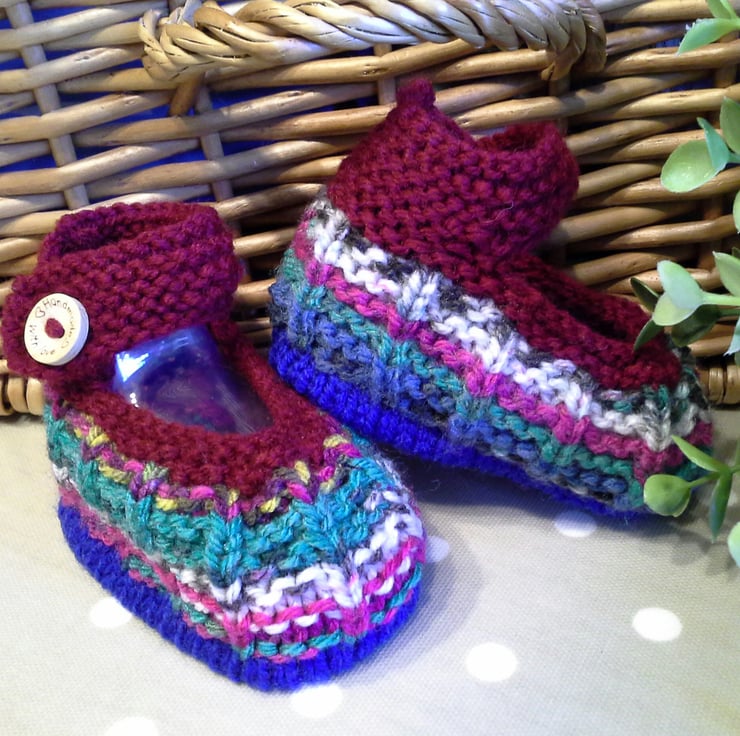 A sweet pair of baby girl's shoes designed and hand knitted by myself using quality branded machine washable yarns to keep those delicate toes cosy and warm throughout the following cold months.