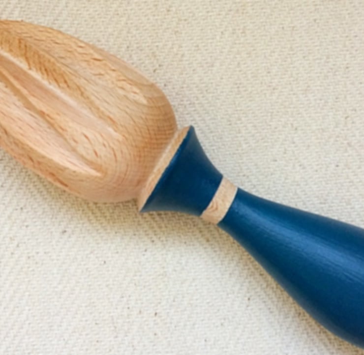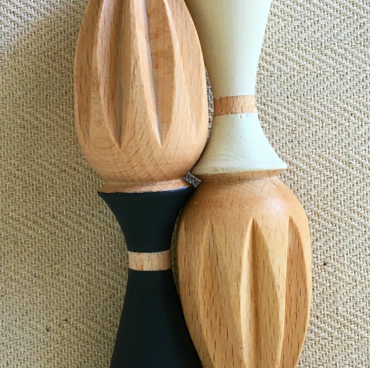 This solid beech citrus juicer is a great little number, and unlike the standard squeezer it's turned to a point for maximum juicing. The handle is hand painted and finished with a coat of clear organic varnish and the head seasoned with food grade mineral oil to protect and enhance the natural grain of the wood. (All paints and finishes are organic/eco-friendly and EN71 compliant with the Children's Toy Safety Regulations.