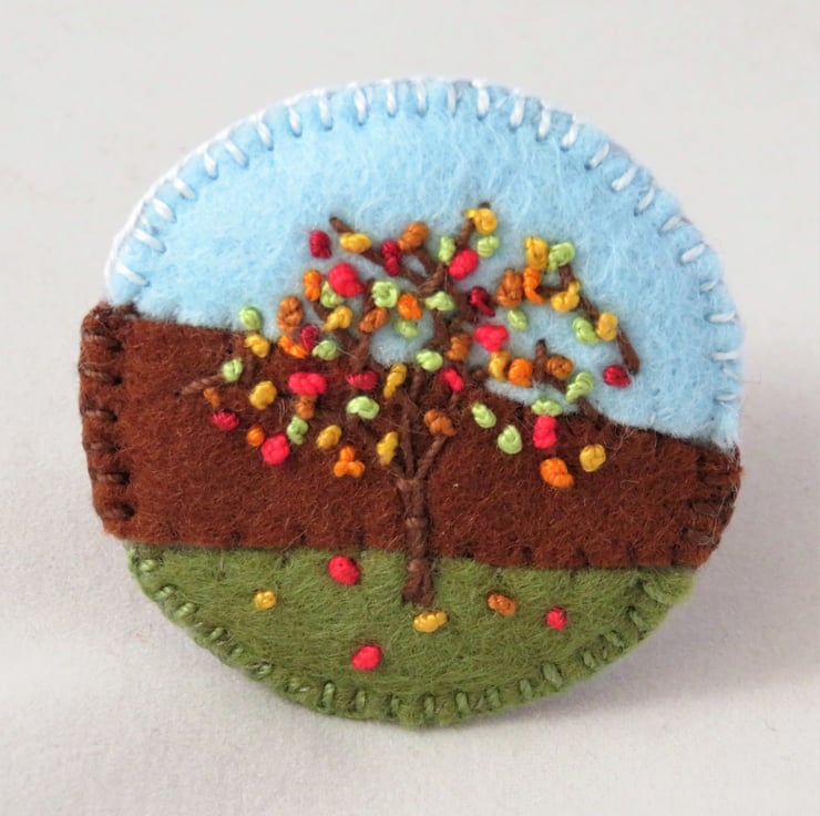 One in a series of autumn design embroidered felt brooches