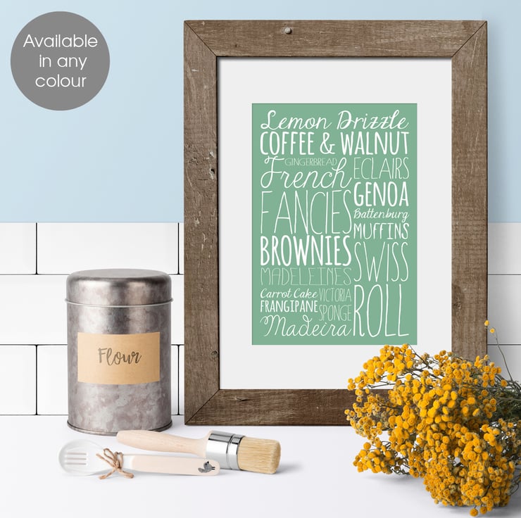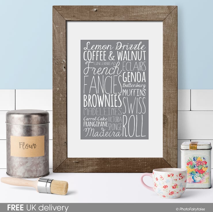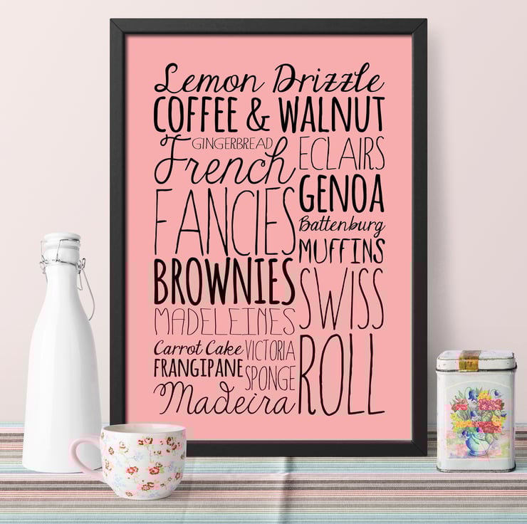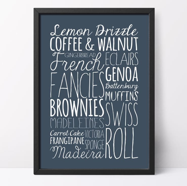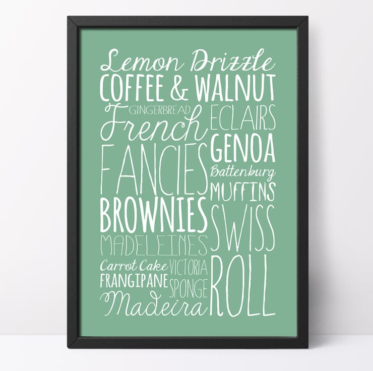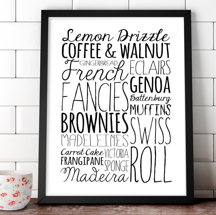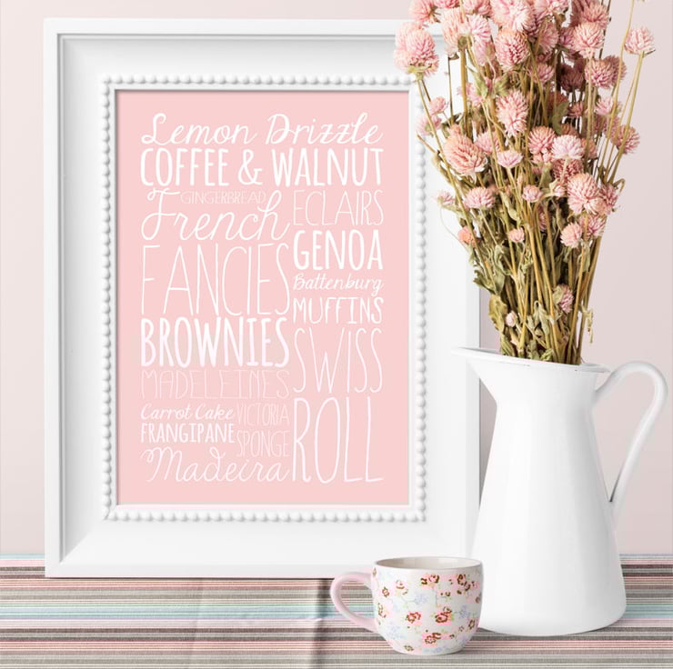 This gorgeous typographic print would look perfect on a kitchen wall - it might make you want to constantly eat cake, but that's a small price to pay!
