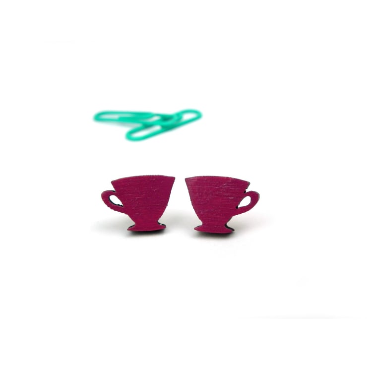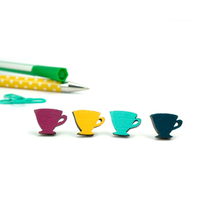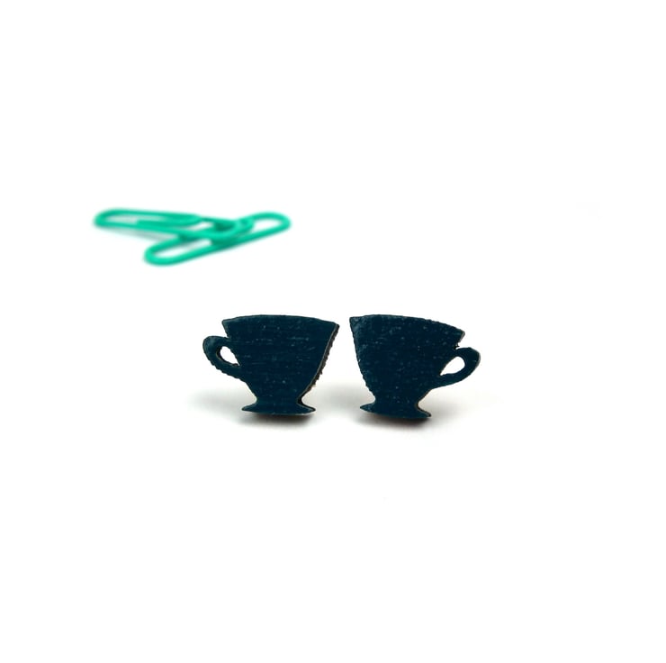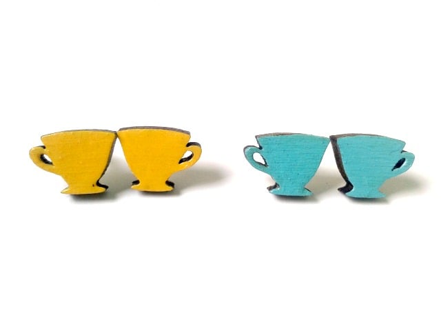 Tiny wooden tea cup shaped earrings because who doesn't love a cuppa?!