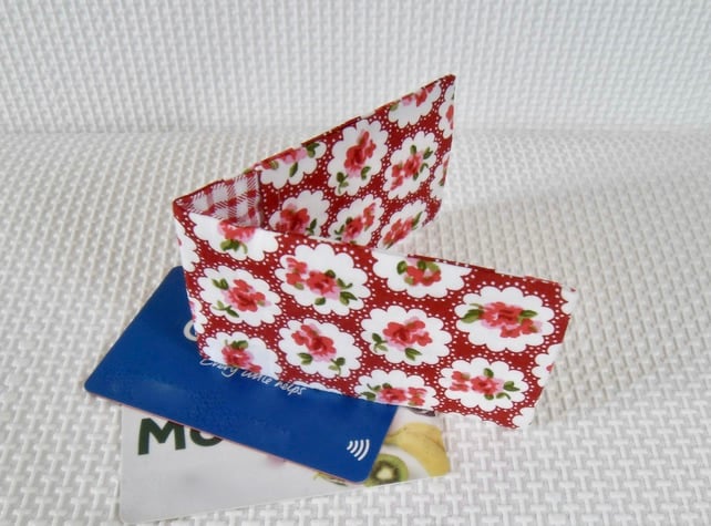 To match, there is a little wallet designed to hold a couple of travel passes, credit cards or tickets. The fabric has been lightly interfaced and lined with red and white check fabric.