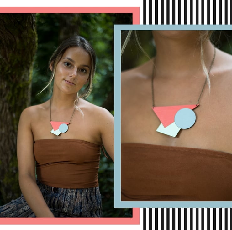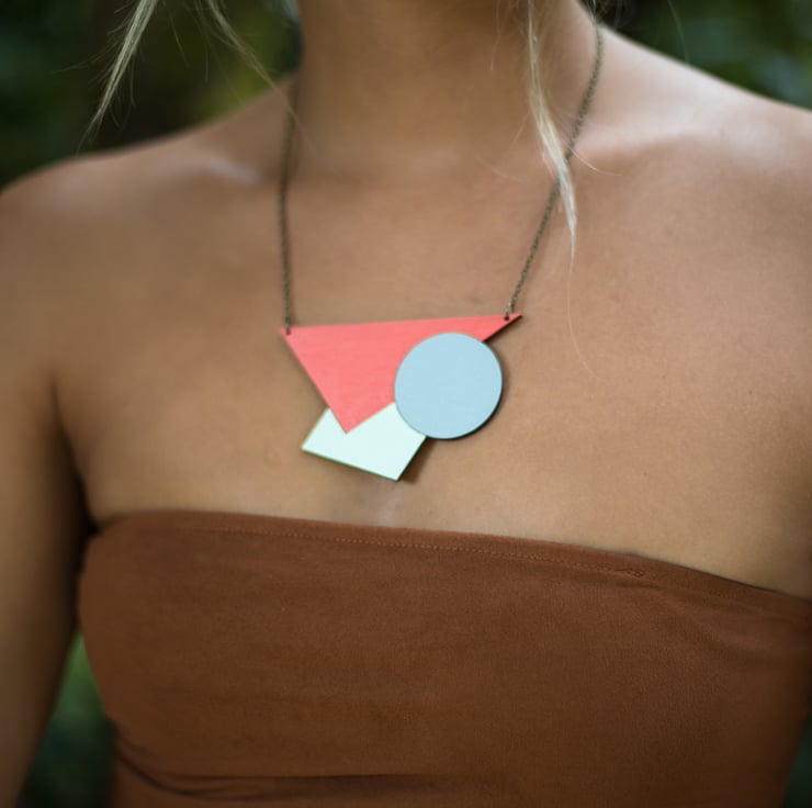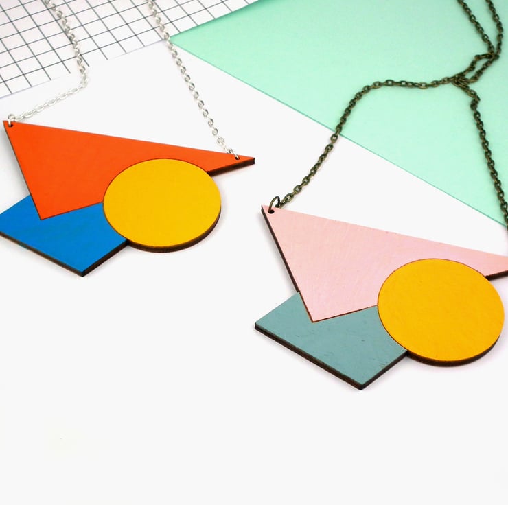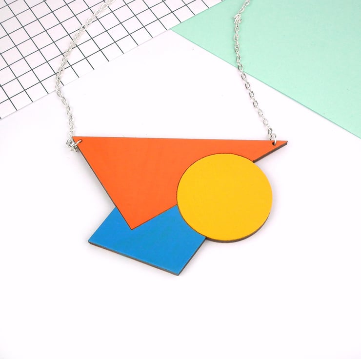 Designed in the Red Paper House studio this large statement, geometric necklace is bold, bright and contemporary.