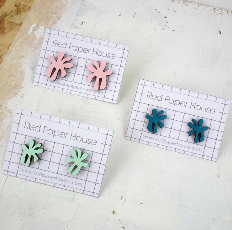 These quirky stud earrings are created from an original hand drawn illustration, designed in the Red Paper House studio.