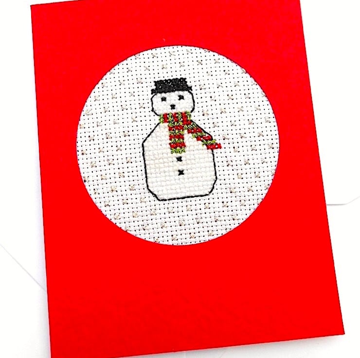 The snowman has silver floss snow and little trees padded cross stitch cards.