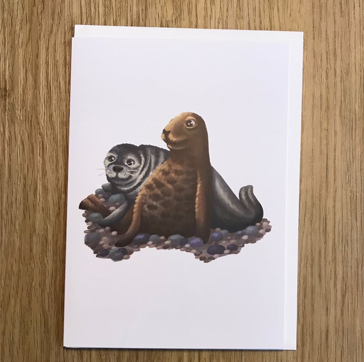Pair of seals blank greeting card with white envelope by DuffleCat Prints (Damian Case)