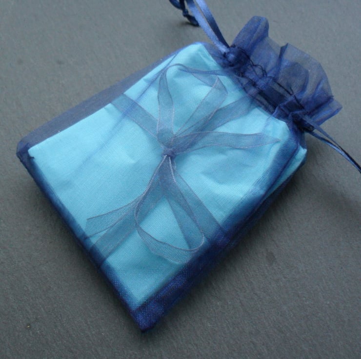 Tissue paper and organza bag may be a different colour than in the photo