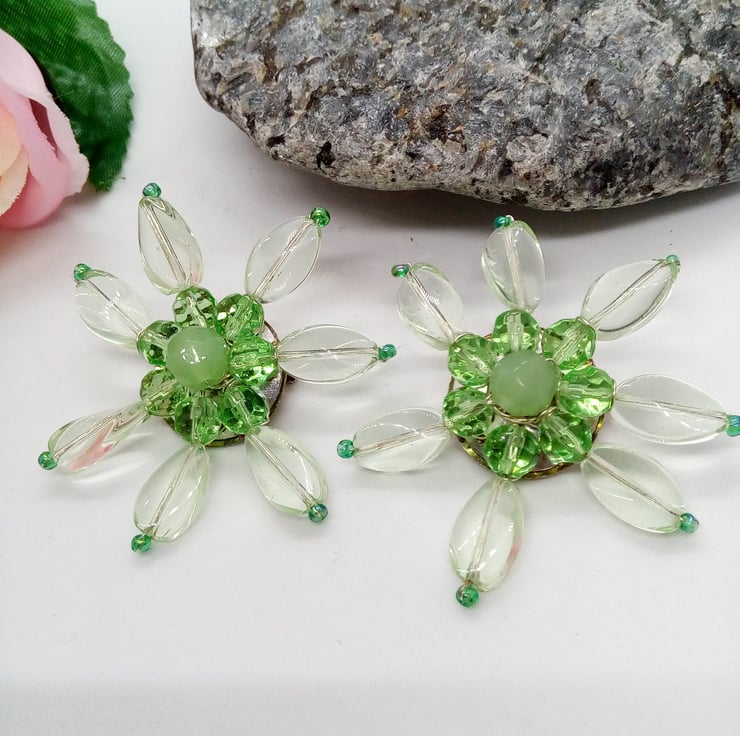 Green Wire Wrapped Ladies Crystal Beaded Floral Brooch
